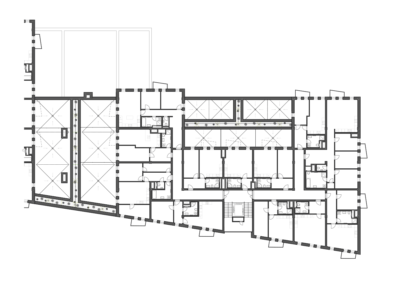 | Budova | Podlaží | Typ jednotky | Č. jednotky | Stav jednotky | Dispozice | Balkón[m2] | Terasa[m2] | Kóje | Celkováplochadle nařízení vládyč. 366/2013 Sb.[m2] | Celkováplochamístností jednotky[m2] | Prodejní cena[Kč včetně DPH] | Karta jednotky |